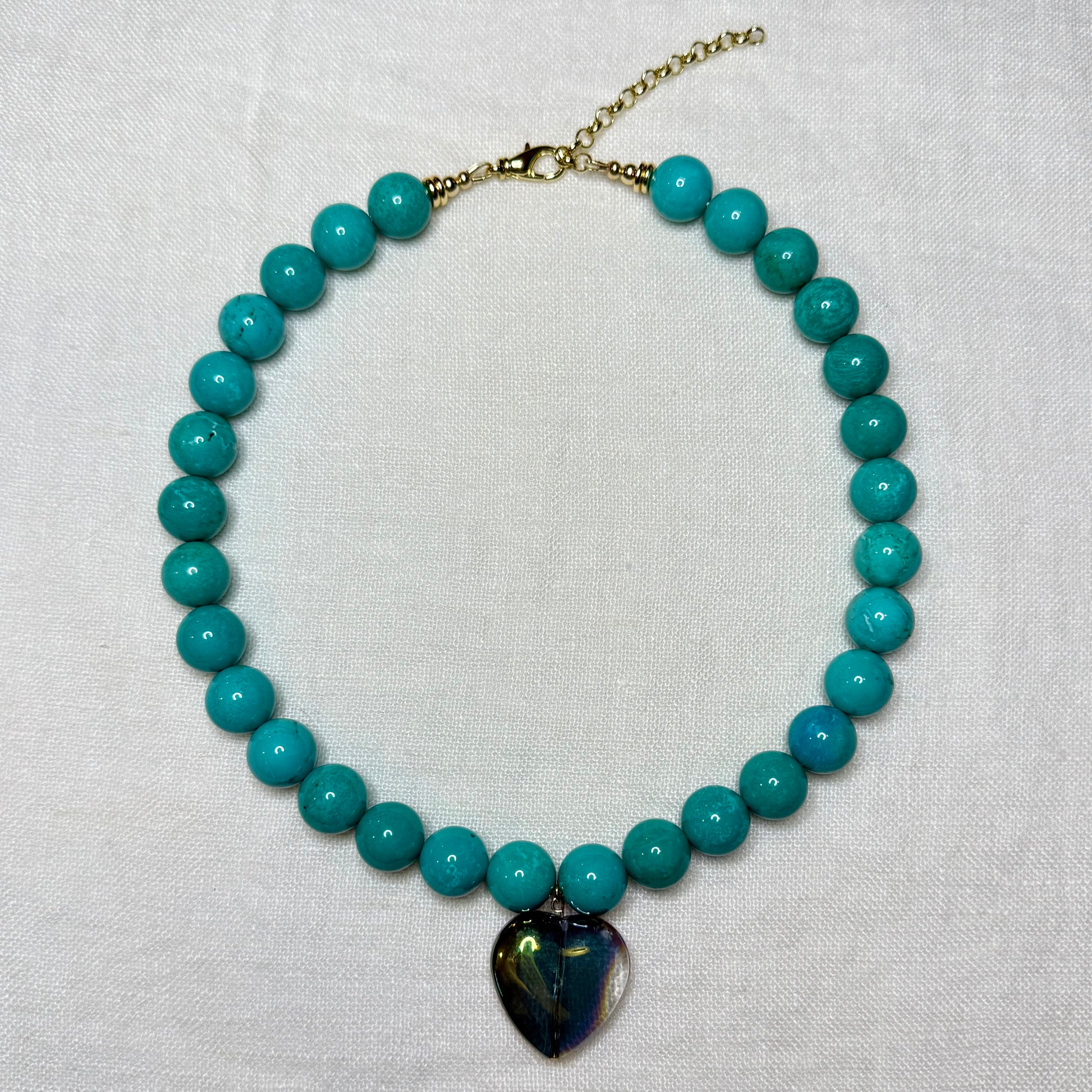 - Turquoise Howlite beads, glass heart charm